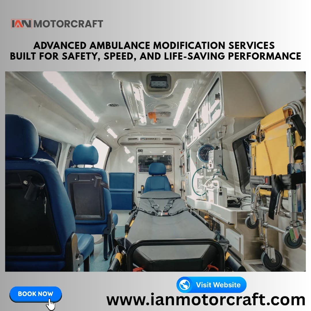 Upgrade your emergency response vehicles with our Ambulance Modification Service designed for safety, efficiency, and reliability. We specialize in custom ambulance fabrication and modification, including medical interiors, oxygen systems, stretcher fittings, emergency lighting, sirens, electrical setup, and storage solutions. Our expert team ensures every ambulance is built according to modern healthcare and safety standards, providing comfort for patients and convenience for medical staff. With high-quality materials and professional workmanship, we deliver durable and dependable ambulance solutions for hospitals and emergency services. Book our Ambulance Modification Service now and get the best quality ambulance setup for your needs.